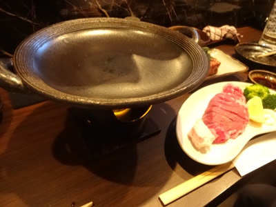 つづいていただいたのが、ヒレ肉の陶板焼!和牛とか国産とかメニューに書いていなかったのですが、登場したお肉が私の大好きな脂身がすくない部分だったので興奮!すると女将さんが