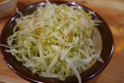 でもこのキャベツの千切りは普通ではありませんよ。特性の胡麻油のタレがかかっていてこれがほんとはまるおいしさなんですよ〜!おもわずおかわりしちゃいました!
