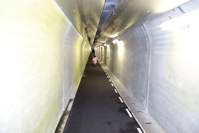 この日は20分間の放流があると聞いていたので、急いでエレベーターを降りて放流ポイントに向かいました!エレベーターをものすごいスピードで降りて、トンネルを急ぎ足ですすんでいくと、、、ものすごい轟音が聞こえてきましたよ〜!ごぉおおおおお〜〜〜!
