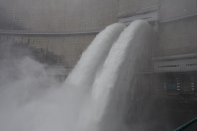 15時になると、、、放送がありまして、、、、大きなガコン!という音とともに、、、ものすごい音と一緒にダムの水が放流されていきました!