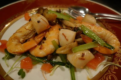 ここでちょっと小休止で海鮮サラダをいただきました!さっぱりとした風味がさらに食欲を、、、、、つづいて海鮮のXO醤炒め!