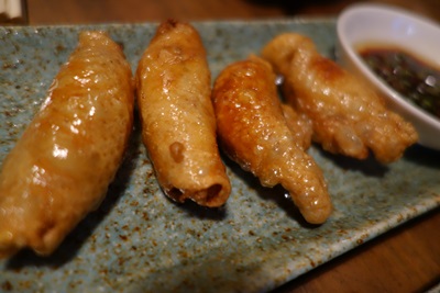 そして、とり皮餃子!ほんと大満足させてくれますね〜、たぁちゃん!炙り明太子と鶏肉をいただきました!