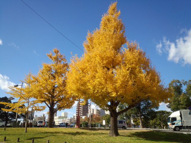 さて、毎日の出勤のときにひろしまドリミネーションが開催されている平和大通りを渡るのですが、毎日みているのがこちらのイチョウの木です。広島には筒賀の大銀杏など有名な木が多いですが、私はこっそりこの平和大通りのイチョウの木もすごいな〜って思っていました。