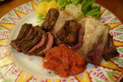 アサードは骨付きのおそらくカルビの部分ではないかと思いますが、脂をしっかり落として焼いてくださるのでもうほんとお肉のうまみがじゅわーってひろがってきますよ〜!ここで一緒にアルゼンチンワインもいただきました〜!