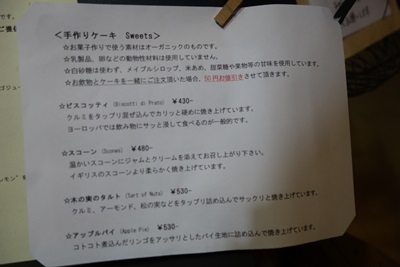 ふと見ると薪のストーブがありました。なんとスイーツは全て手作りされていて、オーガニックなもので造られているそうです。