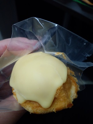 さっそくいただいてみると、しっとりした生地にレモン風味のホワイトチョコレートがあいますね〜!おいしい!