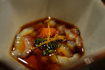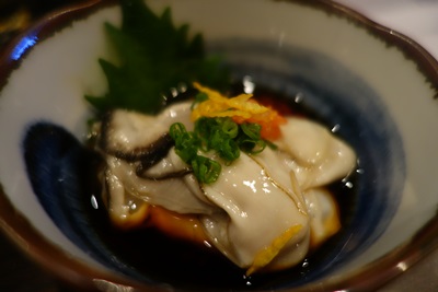 少しして美人女将が差し出してくださった付き出しは白和えでした。さていただこうかと、、、ほわ〜〜〜ん、、、ごまの、、ごまのすりたてのいい香りが〜。おいしい〜〜〜!さすがのおいしさでした!
