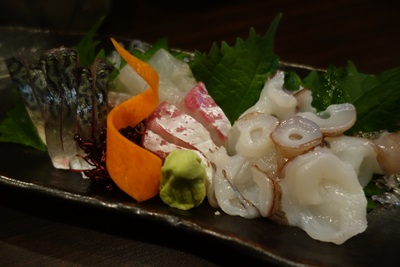 ここで日本酒に切り替えました!マネージャーさんがお勧めの日本酒を持ってきてくださいます。一緒に刺身の盛り合わせも登場しました!生タコが抜群においしかったです!