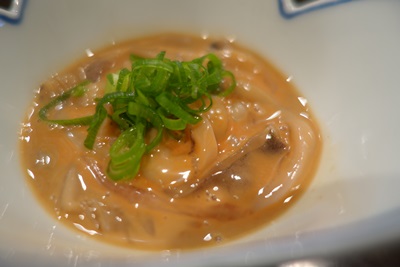 つづいてイカの塩辛!昔は好きじゃなかったのですが、とあるお店のイカの塩辛をいただいて以降、メニューにあると頼むようになっちゃいました。こちらも塩加減がほどよくっておいしい!