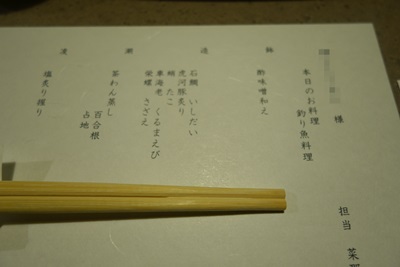 席につくと、本日のメニューが書いてありました。いろいろたくさんでてくるようです。しかもメニューには名前まで書いてありました。