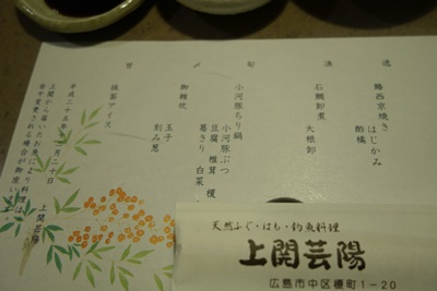 というこで、誕生日前日にとある方からお食事のお誘いをいただきまして初めてこちらのお店にお邪魔してきました。お店の名前は上関芸陽さん。接待などで利用されるような名店なんだそうです。