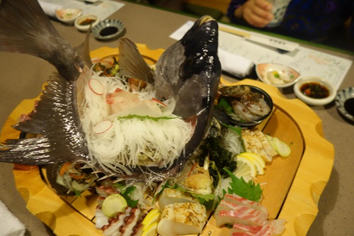まずはお刺身がどどーーんと登場しました!大きな石鯛が!おいしいですね〜!誘っていただいた方が