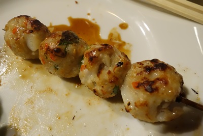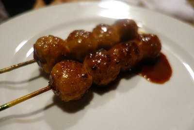 こちらはつくねです。肉団子もありました!違いはなんこつがはいっているかどうかなんだそうです。塩とタレでわけてもらいました!
