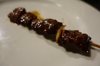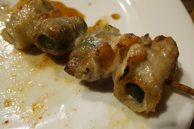 豚バラえのき巻きをいただきました!これでもか!というほど刺してくださっています。ほんとおいしい!