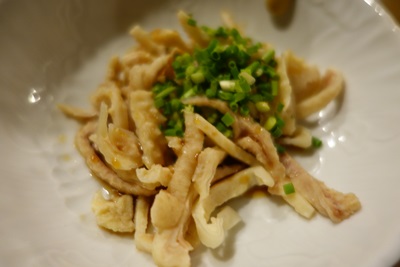 つづいて登場したのが皮酢!この皮酢が歯ごたえも最高よくって美味!生ビールがこれだけで2杯飲んでしまうほど!