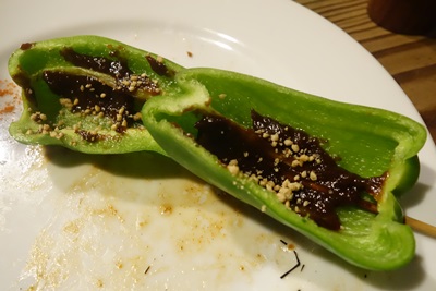 え?ピーマン生っすか?いただいてみると、、、うまい、、なんだこの甘さ!ピーマン生でたべるとこんなにおいしんですか!きんちゃんに教わりました!