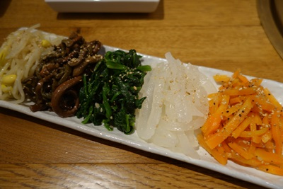 メニューを見ながらいろいろお願いしてみました!まずはキムチ、ナムル、野菜サラダをお願いしました!焼肉の前はやっぱり野菜からですよね!