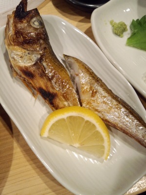 ここでお魚をいただきました!カンパチのカマの塩焼きと最近高級魚となっているハタハタの塩焼きをいただきました。