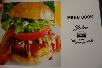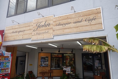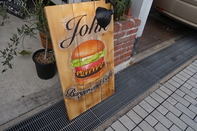 そんななか、こちらのかんばんが気になってしまいました。お昼ごはんを食べたあとだったのですが、このJohnと書かれたハンバーガーの看板が本当においしそうで、、、思わず入っちゃいました!