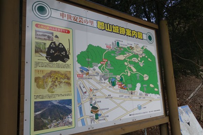 吉田といえば、サンフレッチェ広島の練習グランドやユースチームがいるんだったな〜と思いながら車を走らせていると、、、ふと看板に郡山城とかかれていたので向かってみると、、、あれ?ドライブイン郡山城と書いてありました。立ち寄ることなくそのまま車を走らせていると、郡山城跡という看板をみつけたのでそちらに向かってみました。