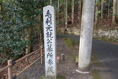 案内のとおりに車をすすめて、駐車場に車をとめてあるいていくと、、5分もしないうちに到着。歩いているうちは感じなかった凜とするといいますか、ぴりっと身が引き締まる雰囲気がそこには漂っていました。階段をのぼっていくとそこには、確かに毛利一族のお墓が。