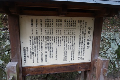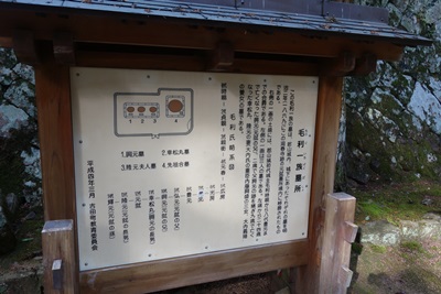 すると、安芸高田市歴史民俗博物館という建物がありました。駐車場に車をとめてどうしようかと思ったら、郡山城ガイドマップが配布されていました。そちらをみてみると、、、おや?毛利元就公の墓所があるとかかれています。ここで、、、遅いのですが気づきました。そういえば、毛利家の居城が郡山城だったんですよね。そして、毛利元就公のお墓や毛利家一族のお墓がここにはありました。