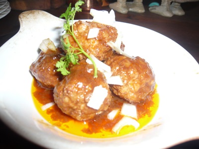 つづいて本日のおすすめメニューだったミートボールをいただきました。いただくとなにやらこりこりとした食感が。