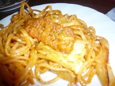 最後の〆はイカスミスパゲッティと広島ナポリタン!歯を黒くしながらいただきました!広島ナポリタンには、、、ちゃんと広島名物イカ天がはいっています。いいアクセント!