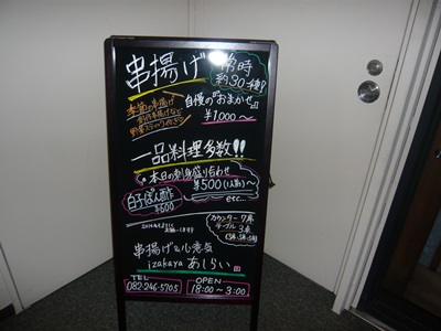 おっと!串揚げですか!これはなかなか珍しいですね。私は関西に11年すんでいましたが、広島にもどって感じることは串揚げのお店が少ないってことですね。確かに小さいころに両親と串揚げなんて食べに行ったことがなかったので文化がないのか、お店がないのか、、、、最近ちょいちょい登場してきているようです。場所をうかがってさっそく行ってみました。