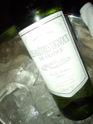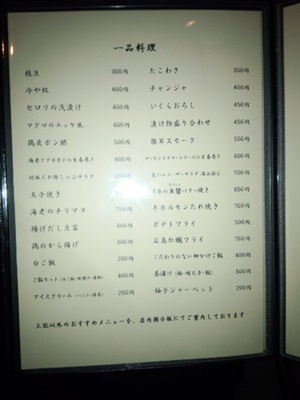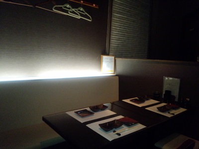 お店に入ると店内はシックな感じで落ち着きのあるつくりになっていました。テーブル席にすわってまずは白ワインで乾杯!メニューをみていると、なかなかおいしそう!ちょっと食べてきていたので今回はアラカルトで串をお願いしました!