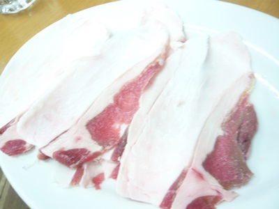 ここでしゃぶしゃぶのロース肉と食べ比べるために、モモ肉をだしていただきました。