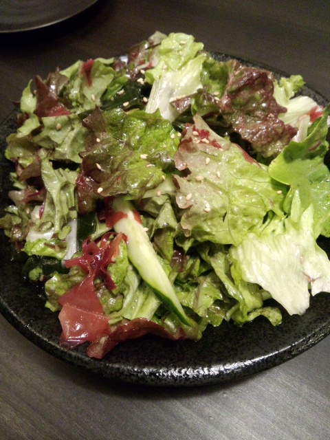 お料理はまずはサラダから。このサラダも新鮮なシャキシャキのサラダでおいしいじゃないですか。あっというまにサラダを完食。ここでふと気付いたのですが、飲み放題の生ビールがなんとプレミアムモルツでした〜!これはうれしいですね〜!