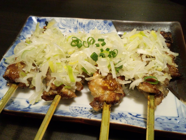 つづいて串焼きが登場しました!焼鳥のお店なので、期待しておりましたが期待以上においしい〜!まずは、セセリから。たっぷりのねぎがポイントですね!このねぎのたっぷり感からお店への期待が高まりました。