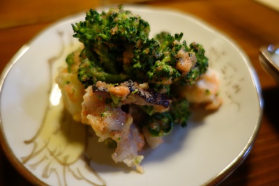 ここで立春朝搾りの日本酒をいただきました。甘みが感じられてフレッシュでした〜!一緒にいただいたのが、汐真いわしです。いい塩梅で煮付けてありますね。すばらしいおいしさでした!日本酒がすすみまして、あっというまに3杯ほど!