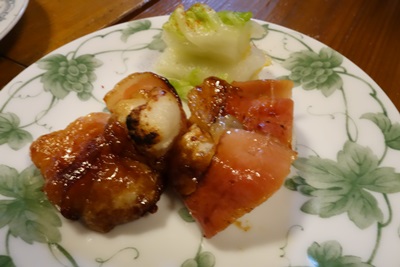 つづいて登場したのが、ミニ刺し盛り!少しずつ盛り付けてあるのでうれしいですね。まずはめかぶからいただきました。久々にめかぶをいただきましたが、おいしいですね〜!そしてつづいていただいたタコに驚愕、、、、ほとんど生の感じだったとおもうのですが、、、もう、、、、抜群においしい!歯ごたえもそうですし、甘みもあって、、、感動しちゃいました!タコ刺しって結構難しいってきいていますが、こういうさらっとだしてくださるところがなずなさんのすごいところですね。