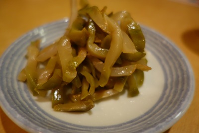 メニューを見てみると、結構豊富だったのでいろいろとお願いしてみました。まずはサービスでザーサイが登場!これがなかなか美味!