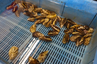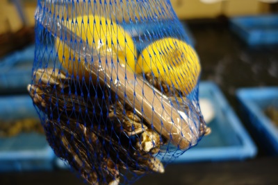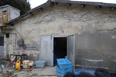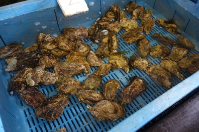 陸に戻ると、とった車海老や牡蠣を保管しているところにも案内してくださいました。