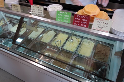 一口いただくと、たっぷりたまごアイスが入っているのがわかります。おいしいですね〜!いつも食べている100円ちょっとのアイスとは味わいが違いますね。あれはあれで好きですが。からさわさんはショウワ14年から今と同じ場所で営業されているそうです。もっと昔から行商などをされていたそうですよ。
