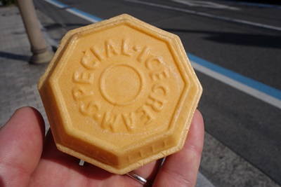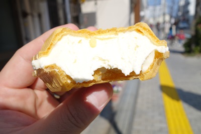 やはり尾道といえばからさわさんのアイスもなかですよね。たまごアイスの最中をこの日もお願いしました。写真でみてわかるとおり、日差しも小春日和というような明るさですからアイス最中もあいますね〜!