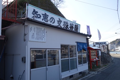 おいしいたまごアイス最中をいただきながら、尾道渡船に再度乗船して対岸の向島に降り立ちました。つづいて訪れたのは港からすぐのところにあります文殊菩薩堂。住田製パン所のお母さんから教わりました。文殊菩薩にお祈りして子供の学才を祈りつつ、そこからちょっとのぼったら景色がとってもいいからって。