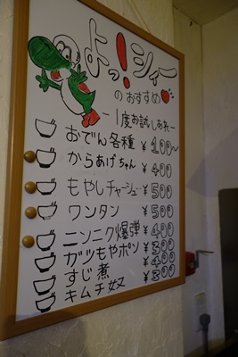 待っている間にふとカウンター横のメニューをみてみると、、、気になる一品料理が!ということでまずはガツもやぽんをお願いしました。ガツともやしをポン酢でということですね。おいしいです〜!