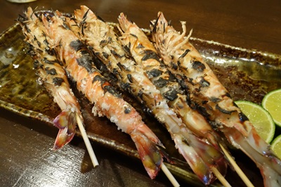 つづいて登場したのが、エビの塩焼き!ショーケースからエビが登場すると、、なんだかぴくぴくって動いているような、、活車海老でした〜!大好きな頭からがぶりといただくと、、、う〜〜〜!おいしい〜!身もぷりっぷりでついさっきまで活きていたのがわかる弾力!最高です〜!