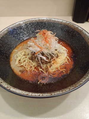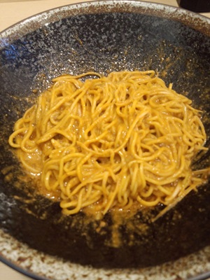 この日は濃厚胡麻の3辛でいただきました。登場した濃厚胡麻をみてみると、、、器が本店とは違っていました。しっかり混ぜて混ぜていただいてみると、、、おや?味がかわっています、、、さらに濃厚でクリーミー感がでています!