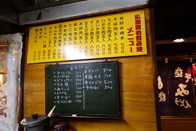 お店に入るとそこには、以前はお好み焼屋さんではなかったんじゃないかと思われる形状の空間がありました。小上がりは2席ありますが、荷物などでふさがっていて基本的にはカウンターのみでしょうか?2名でうかがったのですが、2名で座るともう一杯な感じです。
