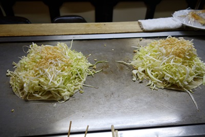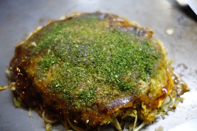 お店の外観とはちがい、料理はとってもおいしいですよ〜!一杯飲みに来るにもいいお店ですね。ここで、お好み焼が登場しました!なかなかおいしそう!