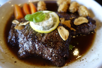 登場したダブルステーキのボリュームにまず圧倒されました!切り分けていただいてみると、、う、うまい!これはうまい!濃いソースなのですが、ばくばくたべれました!最高〜!