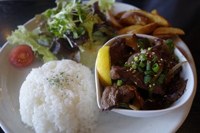 ということで、私はステーキのダブルをお願いしました。一緒に行った友人は日替わりランチをお願いしていました。今日は焼肉のようです。