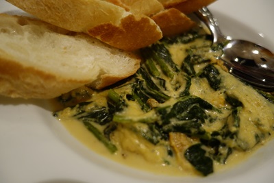 続いて広島名物として全国的に認知されてきておりますウニホーレン!クリームソースのような感じでとってもまろやか!こちらはバケットにつけていただくととってもよくあいますね!