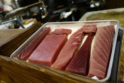 「ちょっと早いんですが、この時期のカツオはほんとにおいしいので私は一番すきなんですよ〜!食べられますか?」