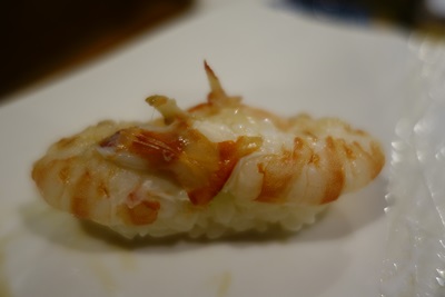 ここからお鮨に移行しました!まずは鯛からいただきます。鮨あらたさんのお鮨は基本的には醤油などをつけなくていい江戸前スタイルです。おいしいですね〜!